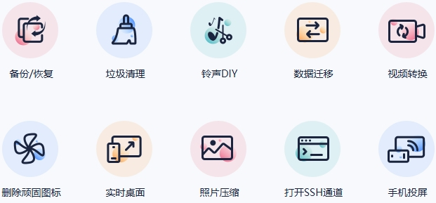 我们为iOS用户设计了一系列实用功能,比如备份数据、铃声DIY、转换视频、删除顽固图标、手机投屏等功能,还有更多好玩的功能等你来玩!