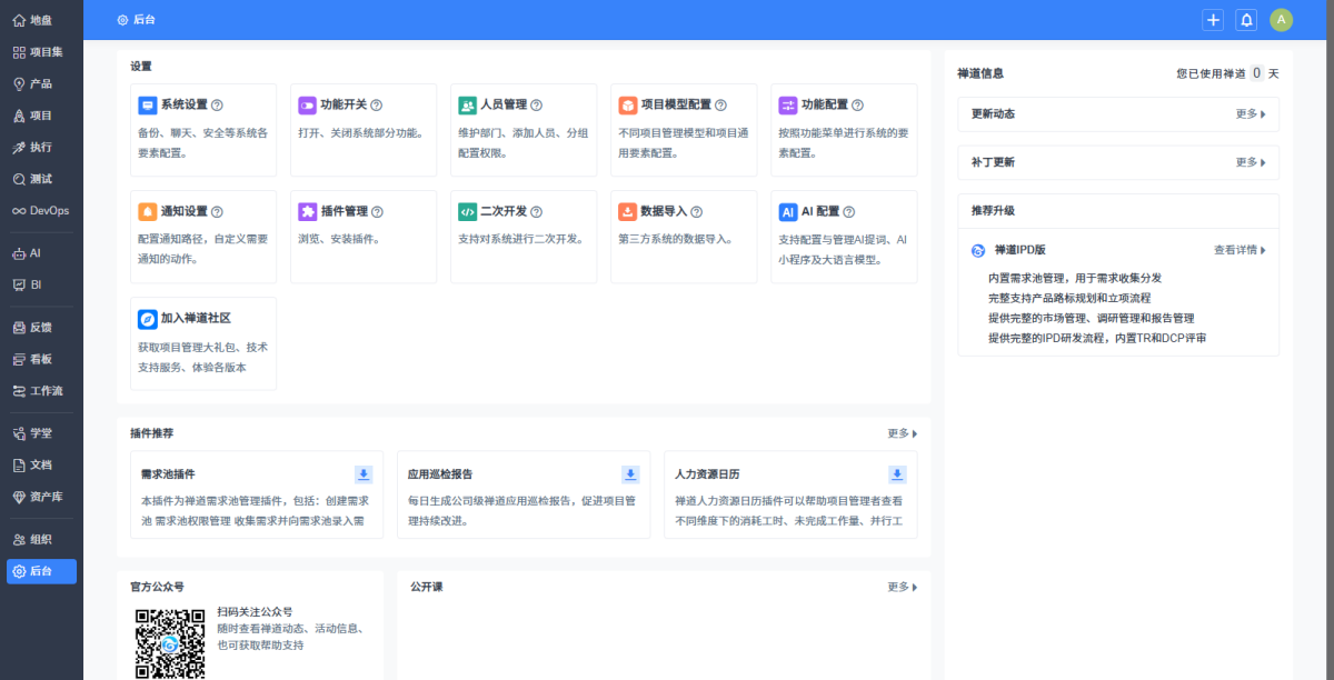 禅道是国产的开源免费项目管理软件,专注研发项目管理,内置需求管理、任务管理、bug管理、缺陷管理、用例管理、计划发布等功能,实现了软件的完整生命周期管理及全面支持IPD管理流程,是一款好用的项目管理平台。