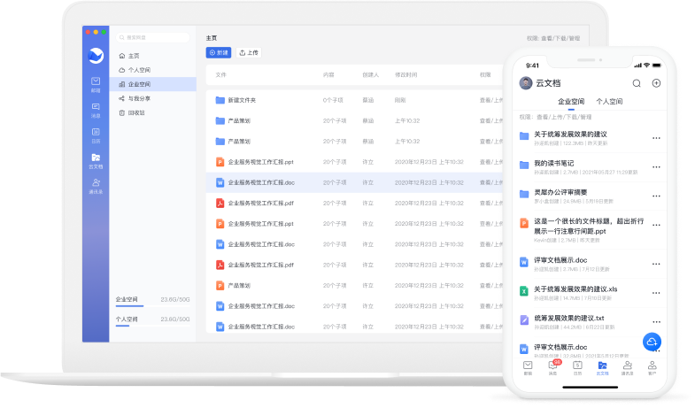 企业空间――企业文件集中管理,文档安全管控,支持超大附件,让企业资产安全沉淀。