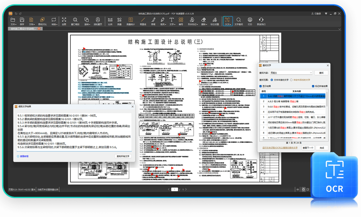框选文字/表格,即刻识别,快速完成抄录工作;扫描件转为可搜索PDF,轻松搜索定位;竖向文字、水印干扰、模糊、蓝图等也都能清晰识别。