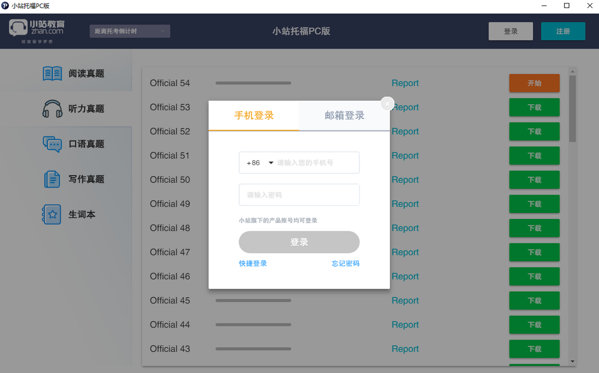 安卓版下载 大小:166.47MB 下载:3256次 小站托福 免费 下载 支 持:win10 分 类:电脑软件 大 小:166.47MB 版 本:正式版2.2.3官方版 评 分: 开发者:极速下载站 下载量:3256次 发 布:2026-04-06 01:40 手机扫码免费下载 #小站托福截图 #小站托福简介 小站托福软件官方版是小站教育推出的一款托福模拟考试软件,收录了历年来的所有托福考试真题,包含了题型练习、错题本、资料库等功能。同时小站托福官方版还有TPO模考、托福听力、托福机经,托福资料汇聚一身的托福备考随身题库。