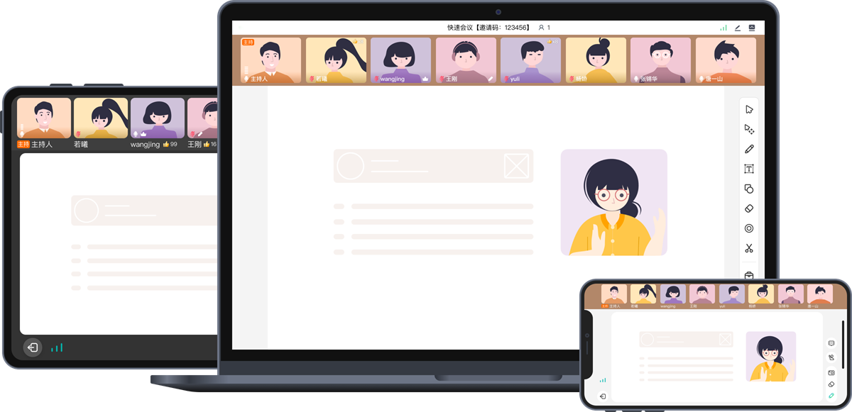 支持电脑端、手机端、平板端、网页端,多端同步互动