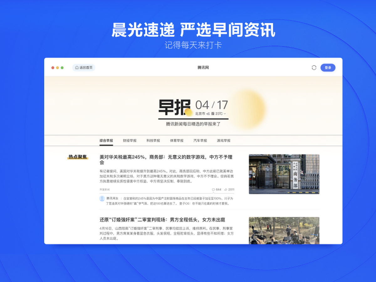 安卓版下载 大小:77.3MB 下载:3256次 腾讯新闻电脑版 免费 下载 支 持:win10 分 类:电脑软件 大 小:77.3MB 版 本:正式版 2.0.7官方版 评 分: 开发者:极速下载站 下载量:3256次 发 布:2026-04-06 01:41 手机扫码免费下载 #腾讯新闻电脑版截图 #腾讯新闻电脑版简介 腾讯新闻是腾讯公司精心打造的7x24小时全方位资讯软件,提供高效、优质的精品资讯服务。在这里,你可以快速获取重大突发热门的新闻资讯,新闻出品的独家内容,同时可参与问答,直播,评论等多种互动,全方位了解新闻动态。 软件优势 精选1w家媒体,提供优质精品资讯服务。 快速获取热点新闻资讯、新闻出品的独家内容。 参与问答,直播,评论等多种互动形态,全方位了解新闻动态。 软件亮点 新增实时热点推送,精彩资讯不容错过。 支持桌面快捷访问,推荐内容更加优质。 包含海量高清视频,本地播放更快更流畅。