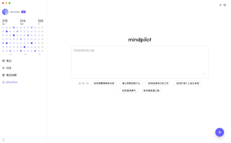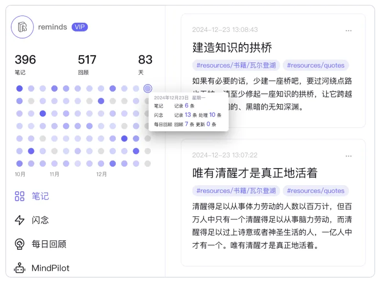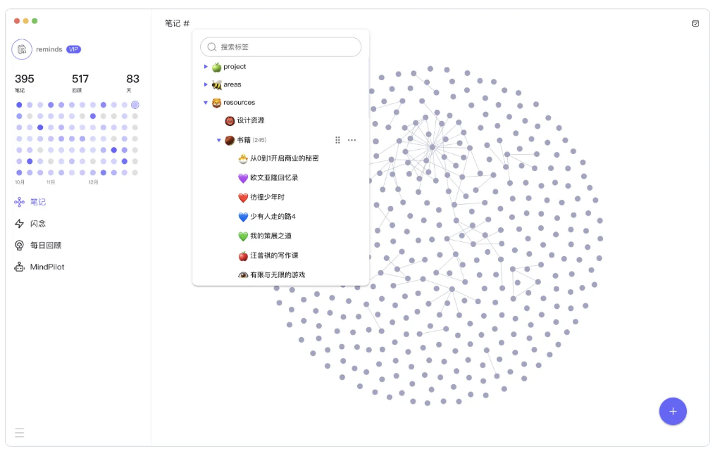 reminds 是一款为终身学习者量身打造的 AI 卡片笔记软件,通过轻松无压力的记录、丰富多样的连接、科学智能的回顾和方便快捷的调用,帮助热爱思考的学习者,用每一次记录助力未来,实现终身学习,终身成长。