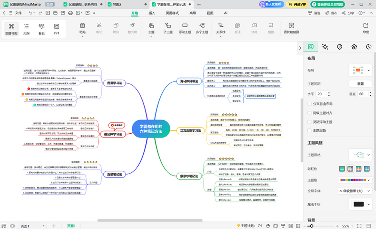 无论是课堂学习还是书籍阅读,思维导图都是一种有效的笔记记录方式。它将知识浓缩成精华内容,完整地保留在一幅导图作品上,减少无效记录。