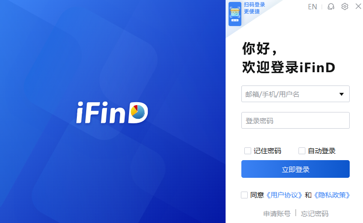 同花顺iFinD金融数据终端,是同花顺公司倾力打造的实时金融数据服务平台。iFinD金融终端始终专注于整合资本市场信息资源,为券商、基金、银行等中介机构以及政府、企业、个人投资者等用户提供全面、深入的金融数据服务。