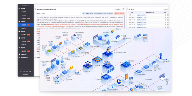 基于同花顺在AI领域先发优势,创建了行业领先功能,包括智能搜索、非结构化数据库、产业链数据中心、AI智能预测(宏观、行业、公司)、事件驱动等投研功能。