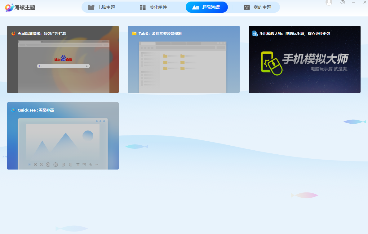 安卓版下载 大小:47.8MB 下载:3256次 海螺桌面 免费 下载 支 持:win10 分 类:电脑软件 大 小:47.8MB 版 本:正式版2.1726.1610.311官方版 评 分: 开发者:极速下载站 下载量:3256次 发 布:2026-04-06 10:23 手机扫码免费下载 #海螺桌面截图 #海螺桌面简介 海螺桌面,支持快速归类桌面文件,桌面更加清晰明了;文件/文件夹一目了然,对文档快速归类。超小内存占用,不占用电脑资源。