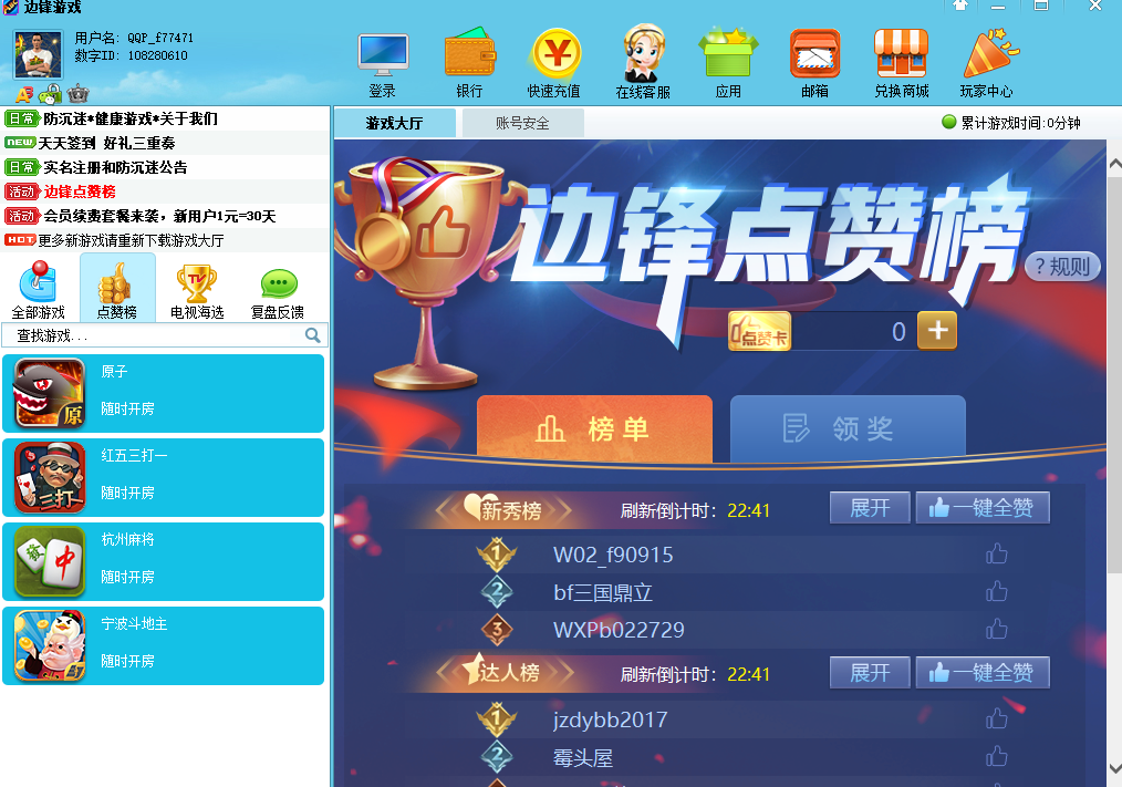 边锋游戏大厅电脑版是国内比较权威的棋牌游戏平台之一,拥有多款火爆热门棋牌游戏:掼蛋,杭州麻将,安徽斗地主等,并且提供免费官方下载。边锋游戏还为广大玩家免费提供海量棋牌游戏攻略和扑克、麻将技巧,无论你是新手入门,还是高手对决都可以享受畅玩的游戏体验。