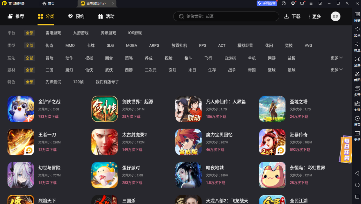雷电模拟器是一款采用手机界面视觉设计的PC端桌面软件。玩家通过在本软件在电脑上玩手机游戏,感受更大的屏幕、更快的速度、更完美的操控体验。
