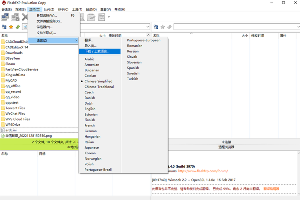 安卓版下载 大小:7.69MB 下载:3256次 FlashFXP 免费 下载 支 持:win10 分 类:电脑软件 大 小:7.69MB 版 本:正式版5.4.0.3970官方版 评 分: 开发者:极速下载站 下载量:3256次 发 布:2026-04-07 01:45 手机扫码免费下载 #FlashFXP截图 #FlashFXP简介 flashfxp是功能强大的FXP/FTP软件,融合了一些其他优秀FTP软件的优点,如像CuteFTP一样可以比较文件夹,支持彩色文字显示;像BpFTP支持多文件夹选择文件,能够缓存文件夹;像LeapFTP一样的外观界面。