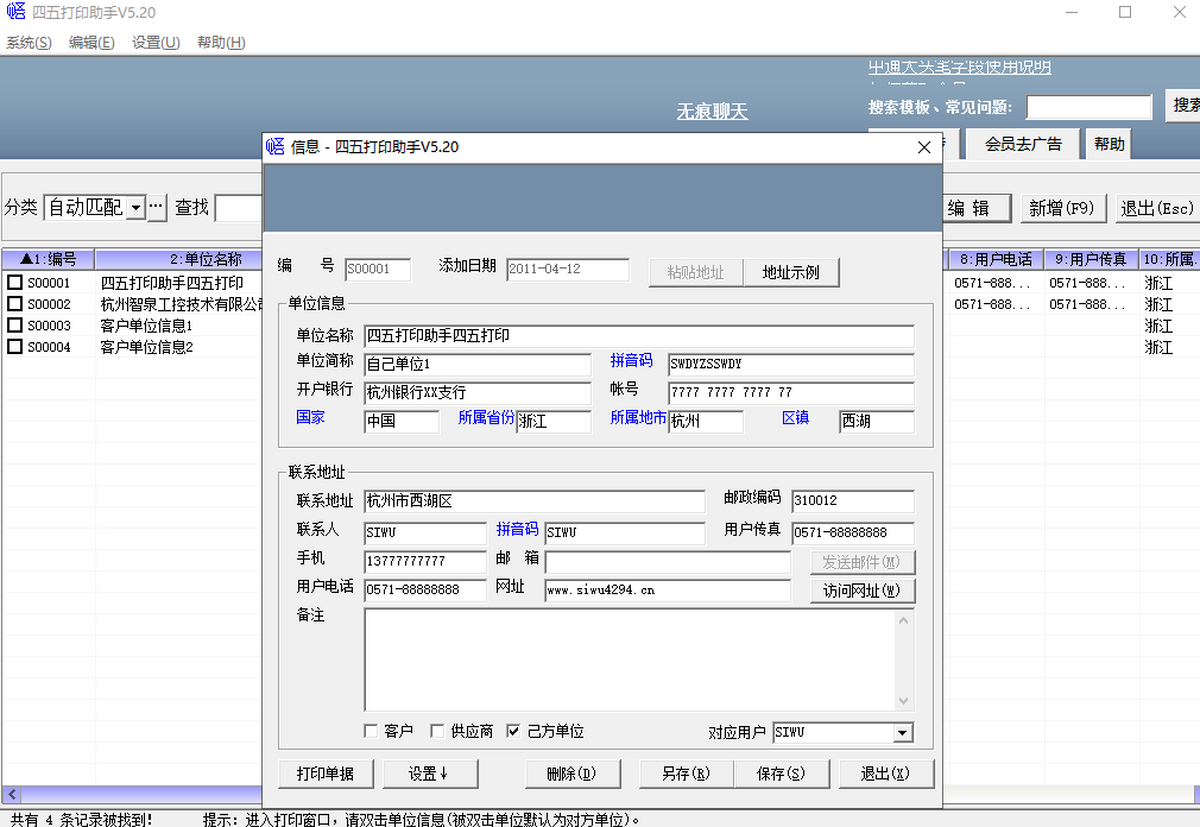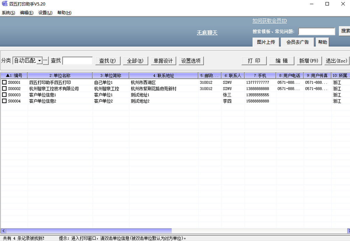 安卓版下载 大小:2.72MB 下载:3256次 四五打印助手 免费 下载 支 持:win10 分 类:电脑软件 大 小:2.72MB 版 本:正式版5.33官方版 评 分: 开发者:极速下载站 下载量:3256次 发 布:2026-04-07 01:45 手机扫码免费下载 #四五打印助手截图 #四五打印助手简介 四五打印助手是一款完全免费的各类票据打印工具,软件能将单位信息导出到EXCEL电子表格中,支持日期及金额的自动转换,通过下载各类模板可以扩展打印范围,包括常用单据,国内各银行票据,国内外各大快递公司快递单,喜欢的快来下载体验吧!