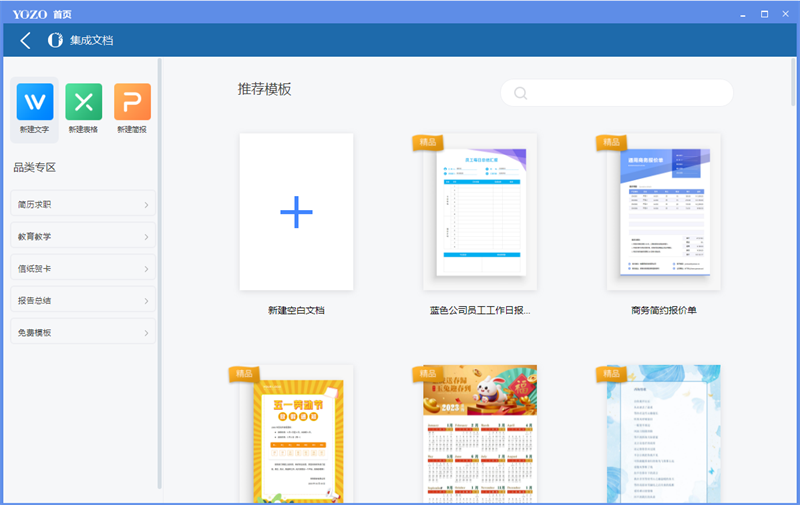 永中Office内提供百万文档模板,用户可便捷的选择模板进行文档创建。高效创作,从永中Office开始。