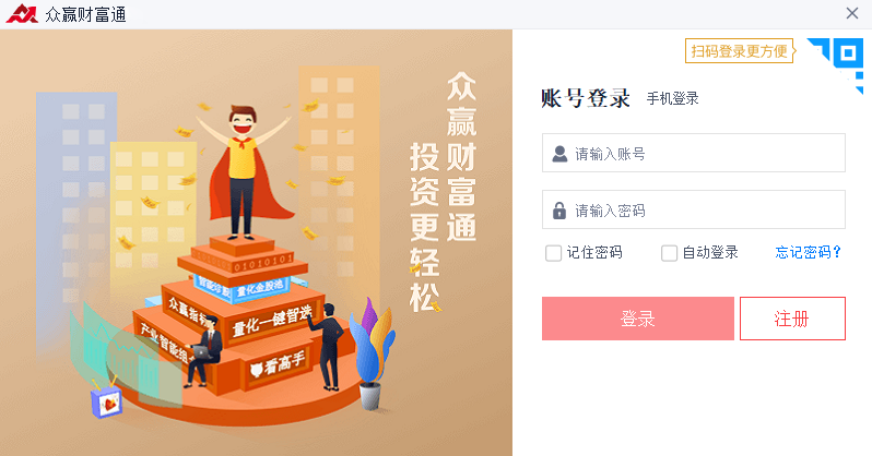 安卓版下载 大小:173MB 下载:3256次 众赢财富通 支 持:win10 分 类:电脑软件 大 小:173MB 版 本:正式版 3.14.3官方版 评 分: 开发者:极速下载站 下载量:3256次 发 布:2026-04-14 10:21 手机扫码免费下载 #众赢财富通截图 #众赢财富通简介 众赢财富通智能决策系统是以大数据模型为依托,从庞大的A股历史数据中海选出,能够超额收益的多种“大概率”事件(比如强势调整)以制定策略,用实战验证及固化这些规律和策略(即盈利模式),同时,兼顾政策导向和市场热点题材,最终形成投资者简单易用、准确高效的投资分析决策工具。