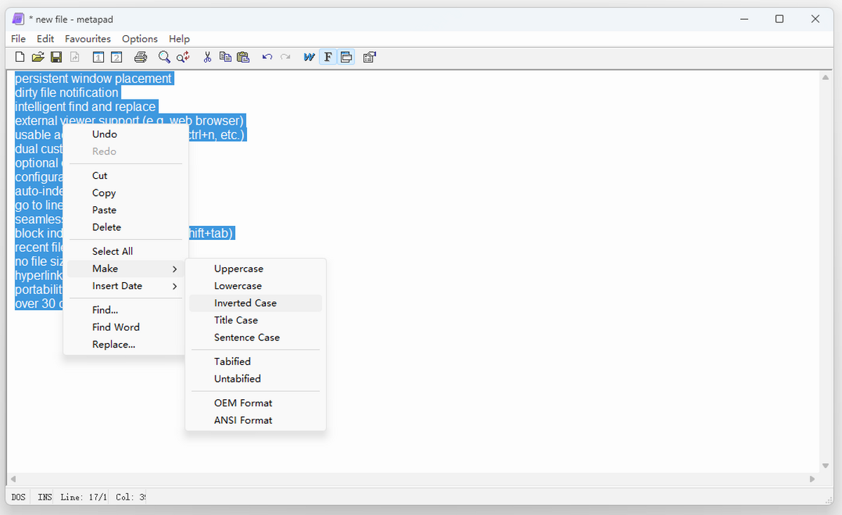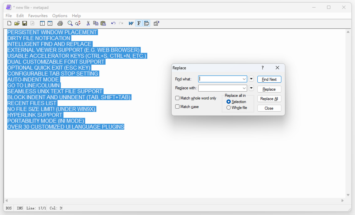 安卓版下载 大小:190KB 下载:3256次 Metapad 支 持:win10 分 类:电脑软件 大 小:190KB 版 本:正式版 3.6官方版 评 分: 开发者:极速下载站 下载量:3256次 发 布:2026-04-15 10:21 手机扫码免费下载 #Metapad截图 #Metapad简介 Metapad 是一款小巧、快速的 Windows 文本编辑器,功能类似于 Microsoft 记事本,不受文件大小的限制,可以开启超大型的文件,所见即所得的打印;支持 DOS 文本、UNIX 文本以及 Unicode、Unicode BE 格式的文件。另外还有诸如自动缩进,自定义制表符长度,支持收藏夹以及在 Windows 2000 下支持透明模式等等自己的特色。