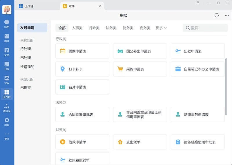 集成文档、日程、会议等协作工具及打卡、审批等OA应用,提供丰富的第三方应用,同时支持接入由服务商代开发及企业自建的应用。