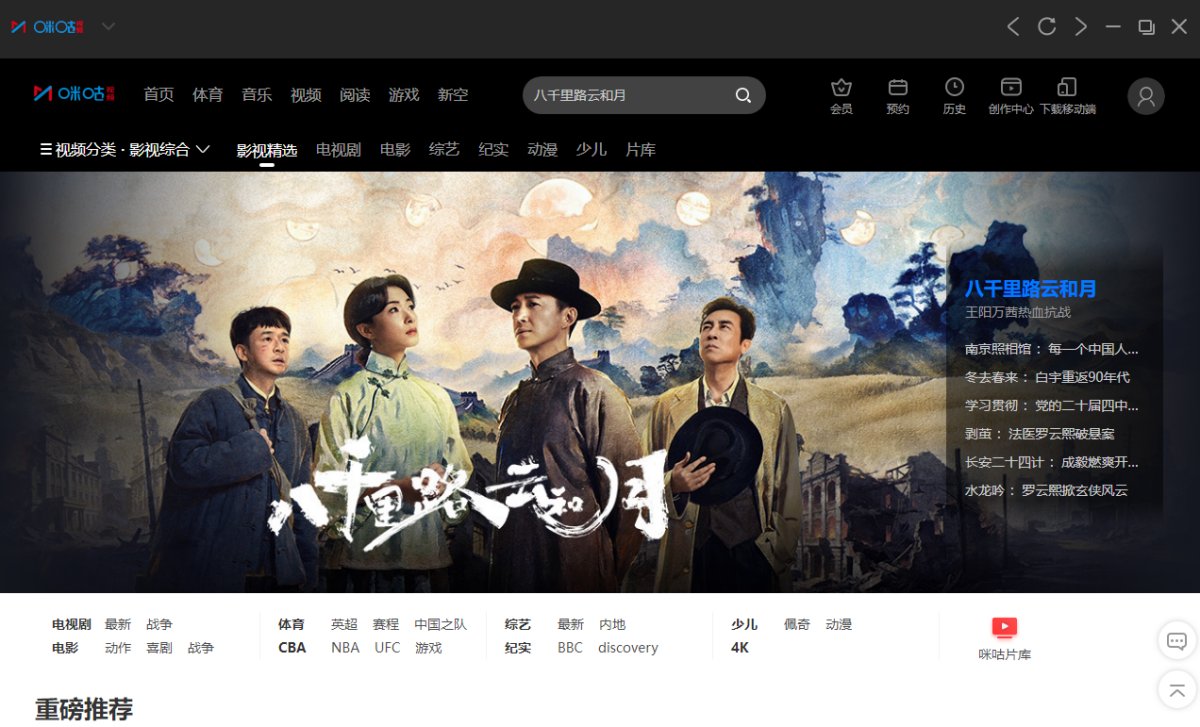 安卓版下载 大小:110MB 下载:1886次 咪咕视频 支 持:win10 分 类:电脑软件 大 小:110MB 版 本:正式版4.25.0.300官方版 评 分: 开发者:极速下载站 下载量:1886次 发 布:2026-04-17 03:35 手机扫码免费下载 #咪咕视频截图 #咪咕视频简介 咪咕视频PC端是面向互联网用户推出的高品质综合类视频客户端业务推出的在线视频播放器,提供海量短视频内容、高质量影视、综艺、直播等优质内容,同时为付费用户提供更优质的会员服务及权益!