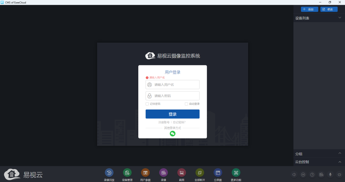 易视云官方版是一款远程视频监控工具,软件能够实时在线查看被监控的环境异常动态,提供了语音对讲、视频录制以及远程报警功能,而且支持多种画面预览形式、可以实时预览视频流、同时拥有QR码扫描、云台控制、视频抓拍、录像保存等多种功能,喜欢的快来下载体验吧!