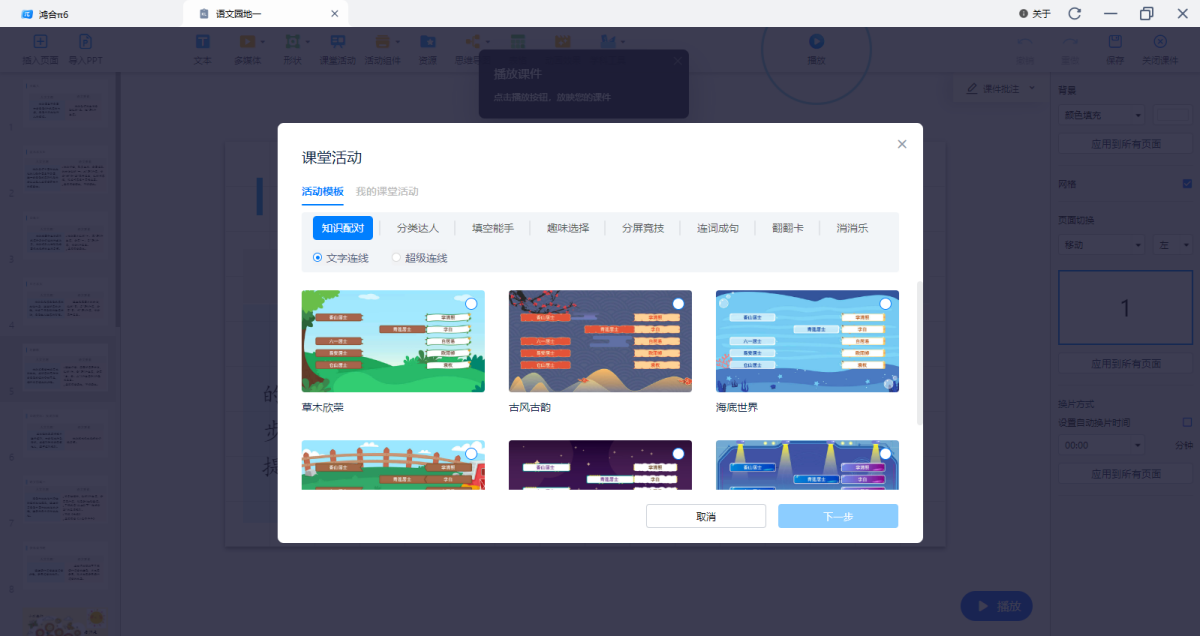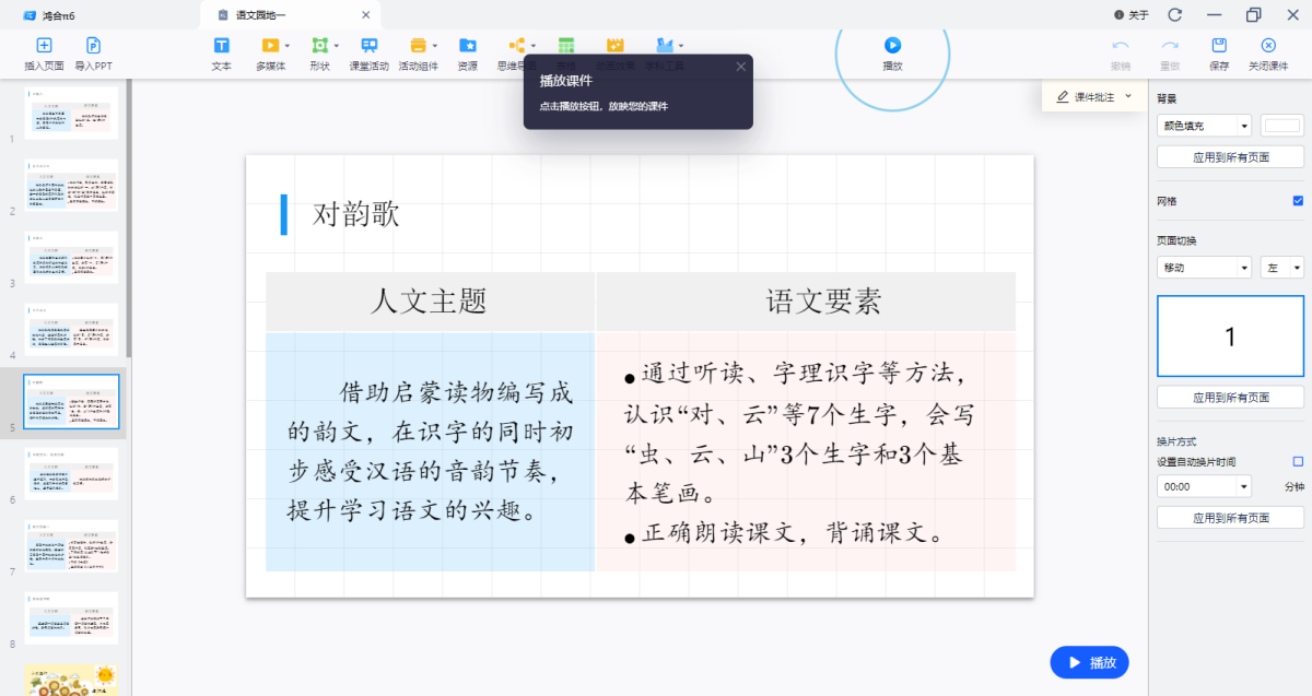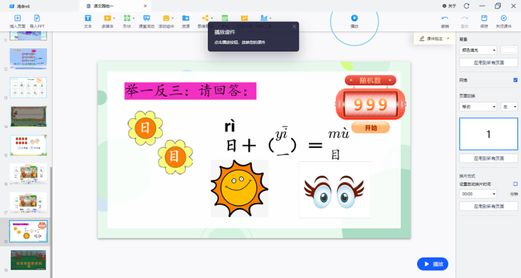 鸿合π6为您提供制作精良的课件素材、动态课件、习题,还支持PPT课件的导入,可以帮助您快速组一份高质量的课件。播放讲解时,授课界面提供的多种交互功能,使教学活动更轻松,更灵活。
