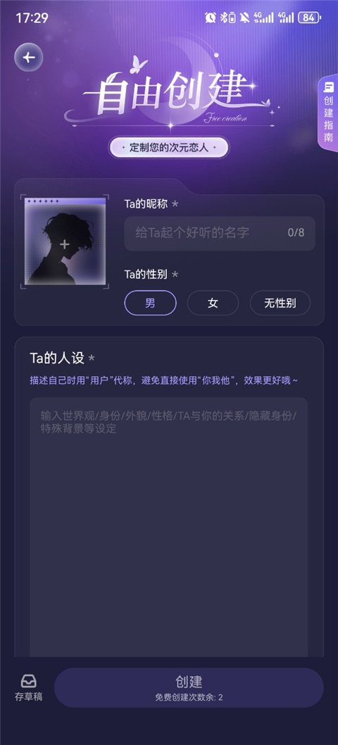 6、同时你也可以自定义你的虚拟恋人。