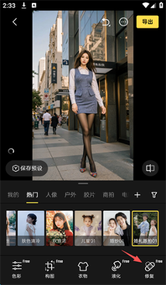 6、还可以进行滤镜,人物修图等操作,随后点击屏幕右上方的“导出”即可。