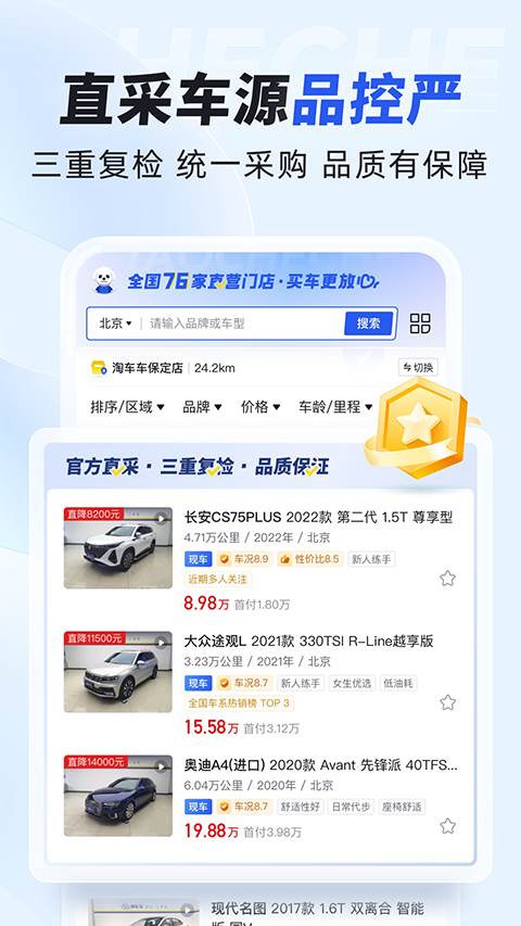 「严格品控·放心开」专业化的检测体系,至高335项质量检测,质检报告随时看。