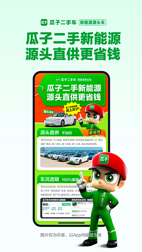 瓜子与4S店、个人卖家、批发车商等二手车源头卖家合作,以“源头直供”模式,统一谈价、统一检测、统一上架,跳过多级中间商。