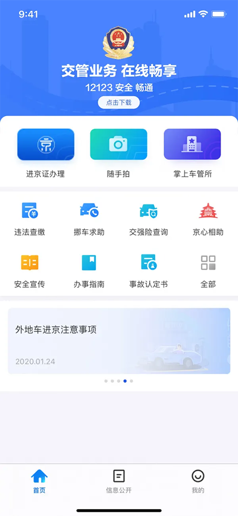 整合高频服务,涵盖进京证、随手拍等高频交管服务;新增实用功能,含窗口“预约-导办-评价”、智能问答、个人交管信息查阅;一站式服务,全方位提供“一站式”交管便民服务。