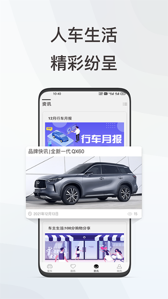 1、【资讯】提供用车知识、品牌资讯等小知识,帮助您更好的使用爱车。