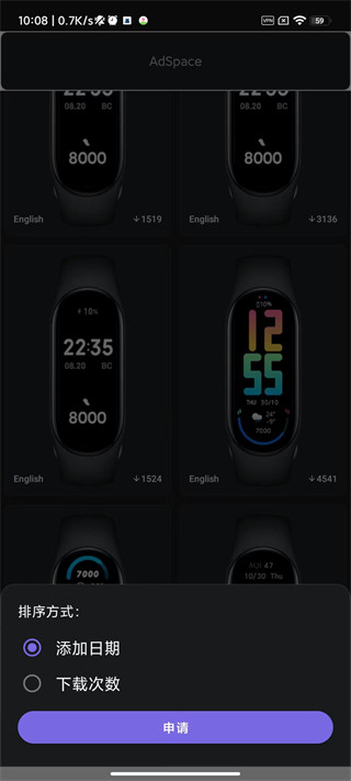 4、按下载次数或添加日期对表盘进行排序!