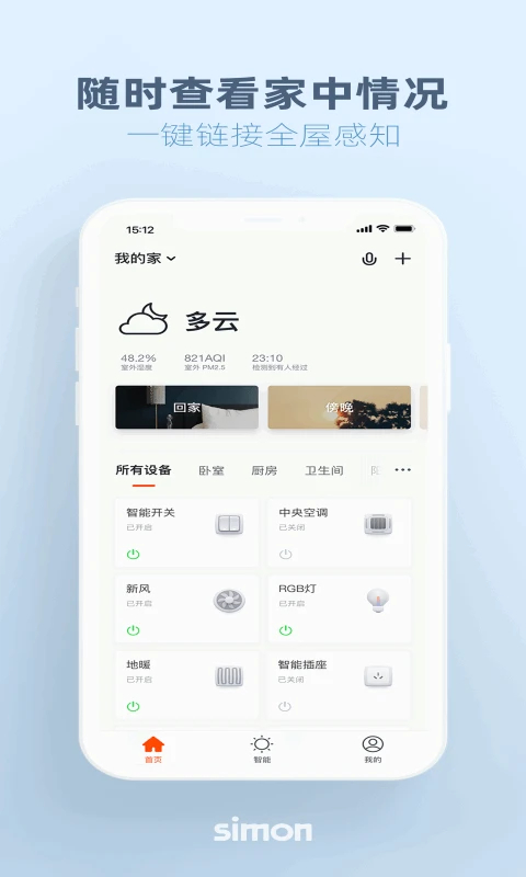 在Simon Smart App中, 你可以方便地管理家中的: