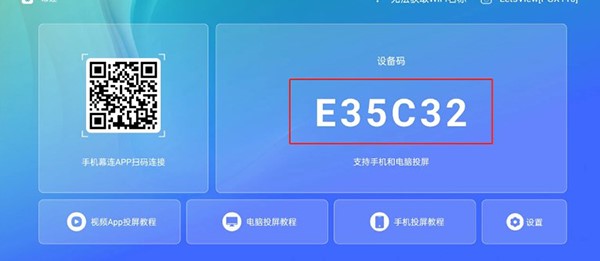 打开电视端幕连,在首页可看到设备码