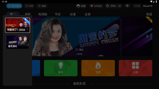 SinzarTV电视版是新疆本土流行MV、精彩综艺节目、定时更新的访谈节目的app,该版本支持用户安装在电视上,即可享受更好的观看体验!