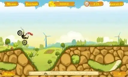 2、操作简单,在屏幕右侧加速,左侧减速,倾斜装置控制摩托车翻转。